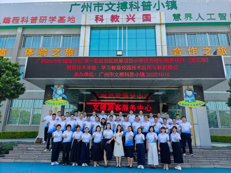 近日,由南宁师范大学承办的“广西2025年‘国培计划’自治区委托项目——小学优秀校长培养项目(第三年)”在广州顺利落下帷幕。本次培训聚焦数字化转型、课程创新、智慧校园建设及校长领导力提升等核心议题,汇聚广西各地小学优秀校长,为广西小学高质量发展注入强劲新动能。