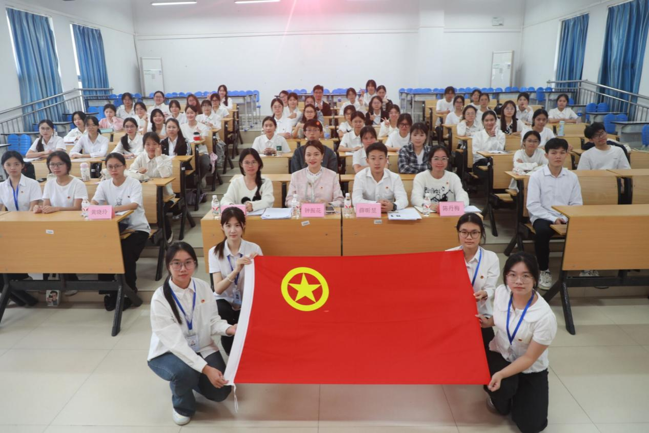 新发展的团员举行入团仪式:奏唱国歌、团委书记钟振花及团委副书记为新团员颁团徽、新团员宣誓、全体起立奏唱团歌并进行合影。