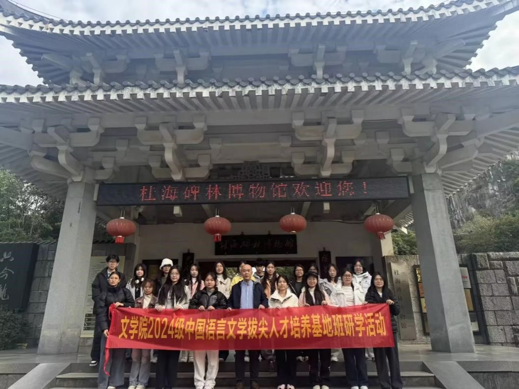 2024级中国语言文学拔尖人才培养基地班师生赴桂林桂海碑林博物馆开展主题研学活动,实地感受石刻文化,提升专业素养。