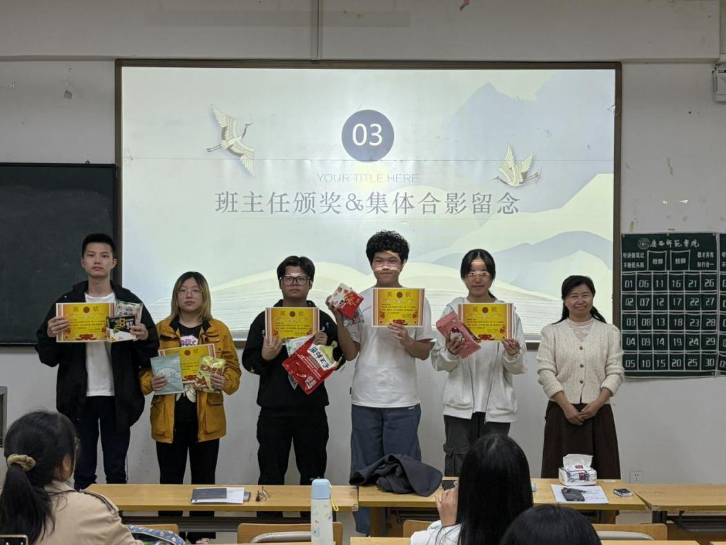 活动最后,张淑云老师为分享同学颁发奖状,并组织全体参会人员合影留念。此次读书分享会不仅深化了同学们对经典作品的理解,也进一步营造了“爱读书、善分享、勤思考”的班级氛围。同学们纷纷表示,将以书为友,在阅读中遇见更广阔的世界,在探索中走向更丰富的人生。