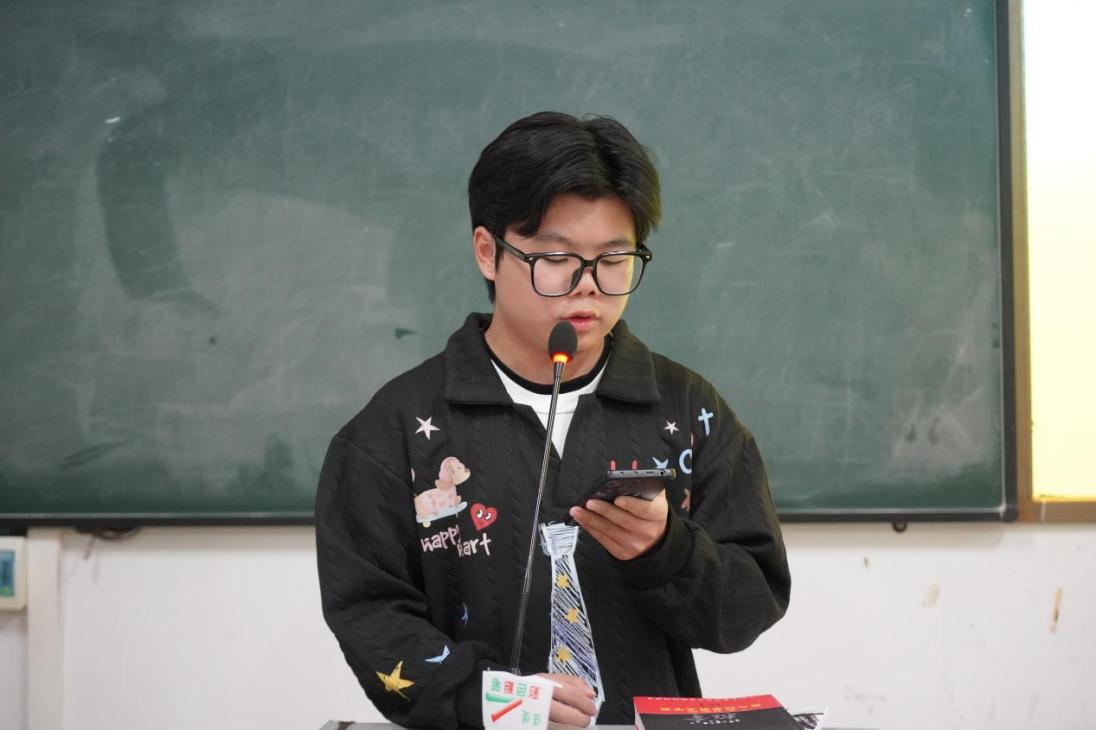 本次分享会聚焦五部经典作品,五位同学依次上台分享阅读感悟。刘子铖同学以《西线无战事》为引,带领在场者触摸战争背景下青年的沉默与叹息,唤起对和平的珍视;胡卫东同学解读《汉字奇兵》,娓娓道出汉字的灵动与文明的厚重;叶婉同学走进《呼啸山庄》,剖析其中炽烈又深刻的爱恨情仇;赖景畅同学分享《额尔古纳河右岸》,描绘原始森林中民族与自然共生的生命史诗;刘字辰同学通过《推拿》,细腻展现黑暗中人性的尊严与温暖。五位同学的分享角度各异、情感真挚,为在场师生带来了丰富的文学共鸣与思考。