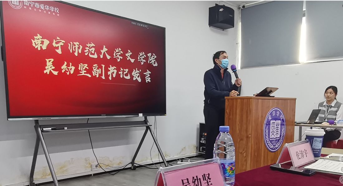 与南宁市爱华学校联合开展的教育实习中期检查活动在爱华学校举行。本次检查以“课堂展示+集中研讨+座谈交流”为主线,全面检视48名2022级汉语言文学专业学生的实习成效,推动校地协同育人走深走实。
